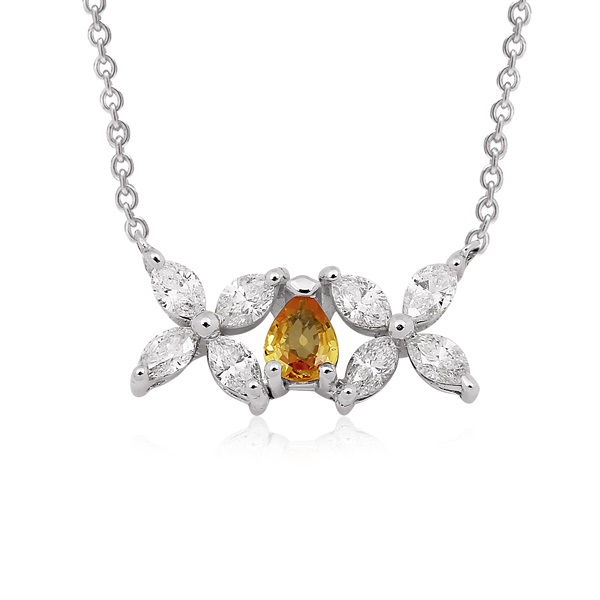 -Marquise diamond and pear yellow sapphire necklace.