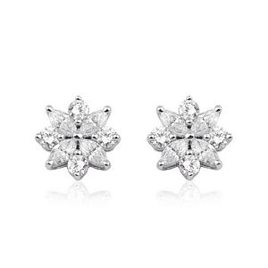 -Yuvarlak kesim pırlantalar ve altın küpe