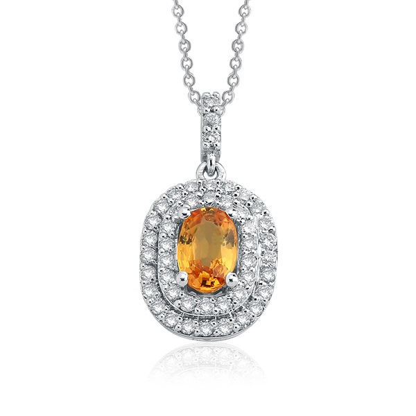 -Yuvarlak kesim pırlantalar, sarı safir ve altın kolye